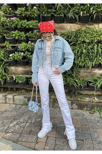 4,065,600 تومانNloves Acik Mavi Etek Ucu Puskullu Crop Kot Ceket