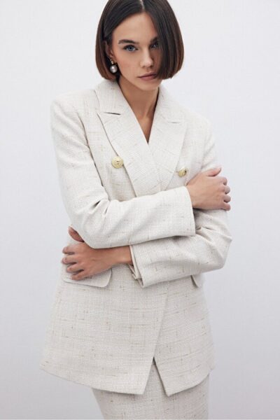 Exquise Kruvaze Cepli Regular Fit Ekru Ceket