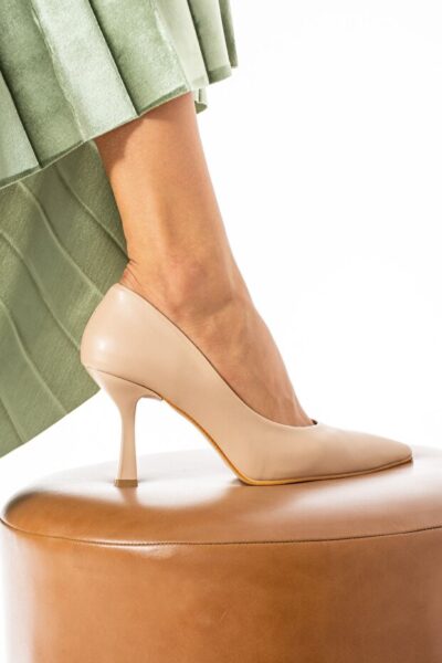 Güllü Shoes Kadın Topuklu Ayakkabı – Yüksek Topuklu Stiletto Rahat Şık Ve Ince Iş Ayakkabısı Bej 8.5 cm