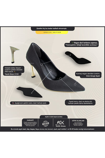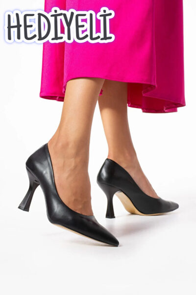 Güllü Shoes Stiletto Siyah Kadın Topuklu Ayakkabı Konforlu Vegan Deri Günlük Ve Özel Gün