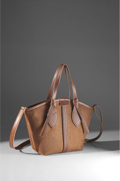 Rimense Kadın Taba Süet Taba Suni Deri Fermuarlı Astarlı El ve Omuz Çantası