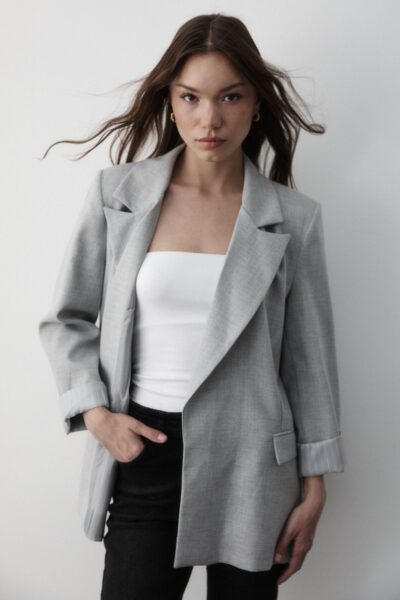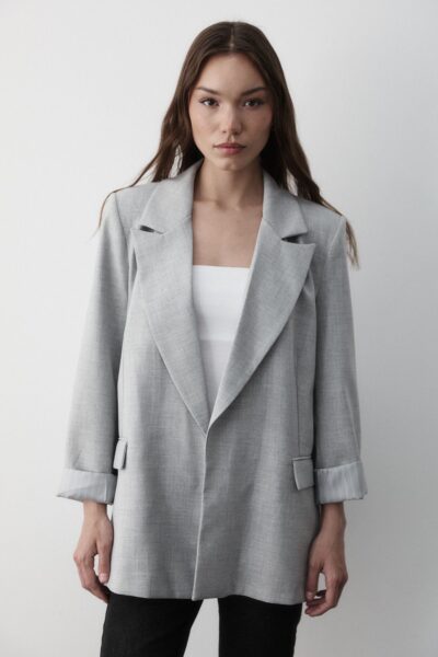 JASTE Kadın Gri Çizgili Içi Astarlı Kol Detaylı Blazer Ceket