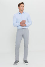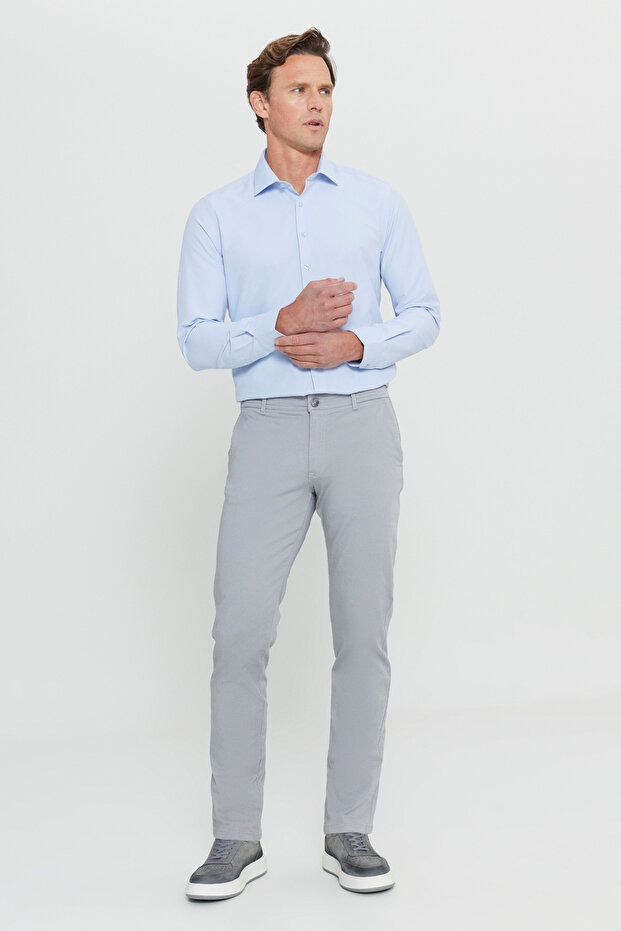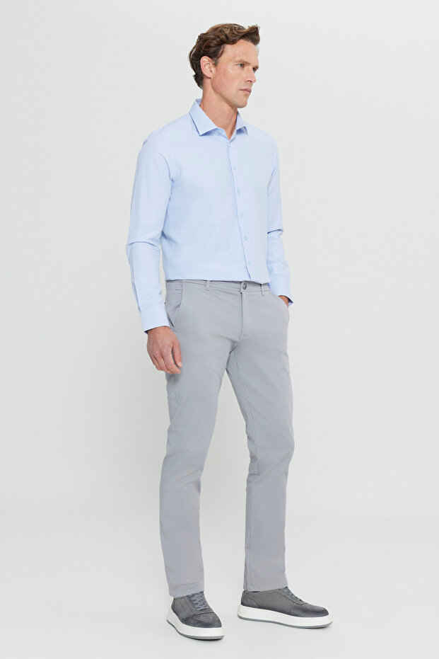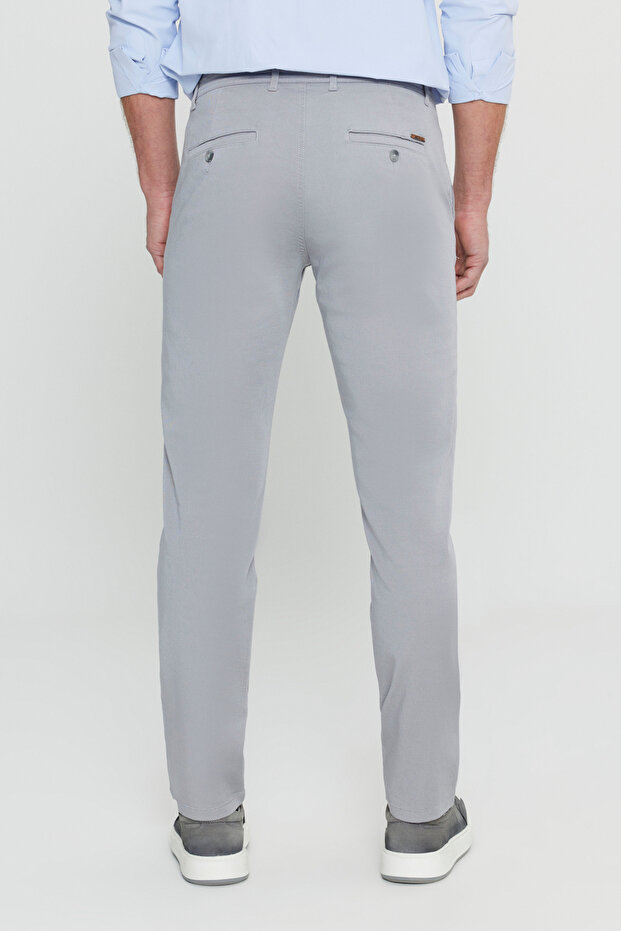 AC&Co / Altınyıldız Classics Erkek Gri Slim Fit Dar Kesim Yan Cep Pamuklu Esnek Chino Pantolon