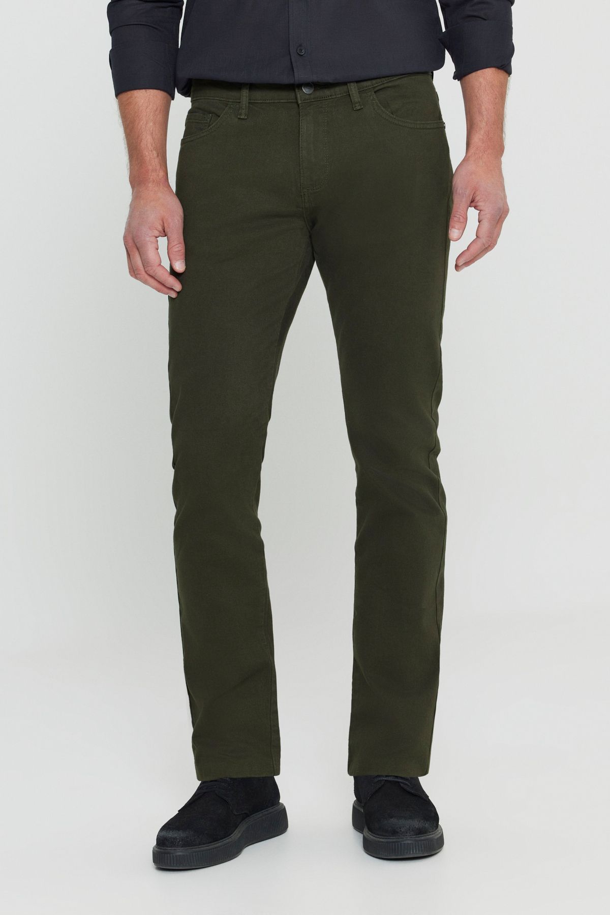 AC&Co / Altınyıldız Classics Erkek Haki Slim Fit Dar Kesim 5 Cep Pamuklu Kanvas Esnek Chino Pantolon