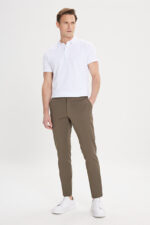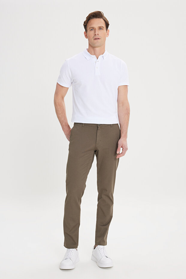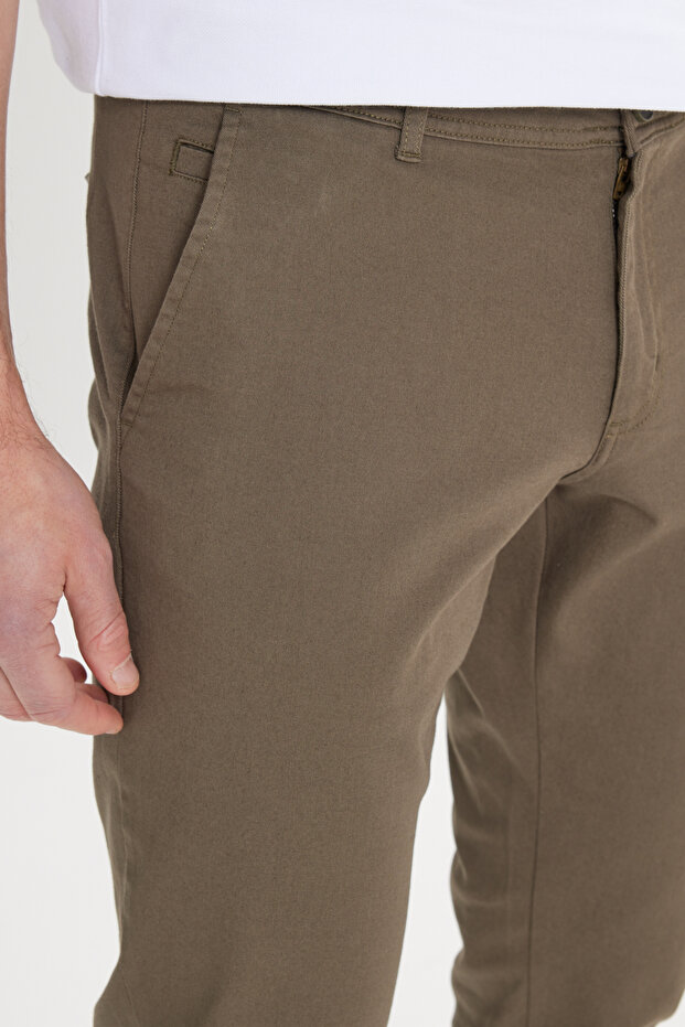 AC&Co / Altınyıldız Classics Erkek Haki Slim Fit Dar Kesim Pamuklu Yan Cep Esnek Chino Pantolon