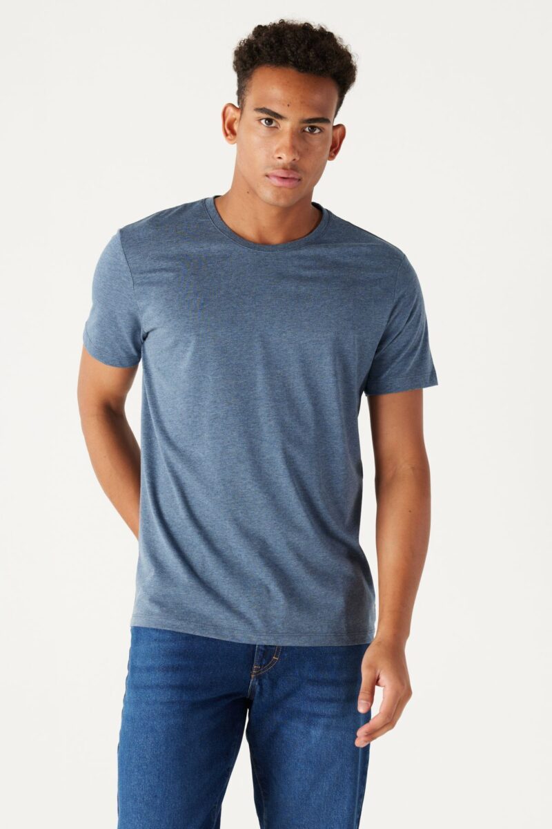 🛍 AC&Co / Altınyıldız Classics Erkek Indigo Melanj Pamuklu Slim Fit Dar Kesim Bisiklet Yaka Basic Tişört