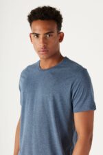 AC&Co / Altınyıldız Classics Erkek Indigo Melanj Pamuklu Slim Fit Dar Kesim Bisiklet Yaka Basic Tişört