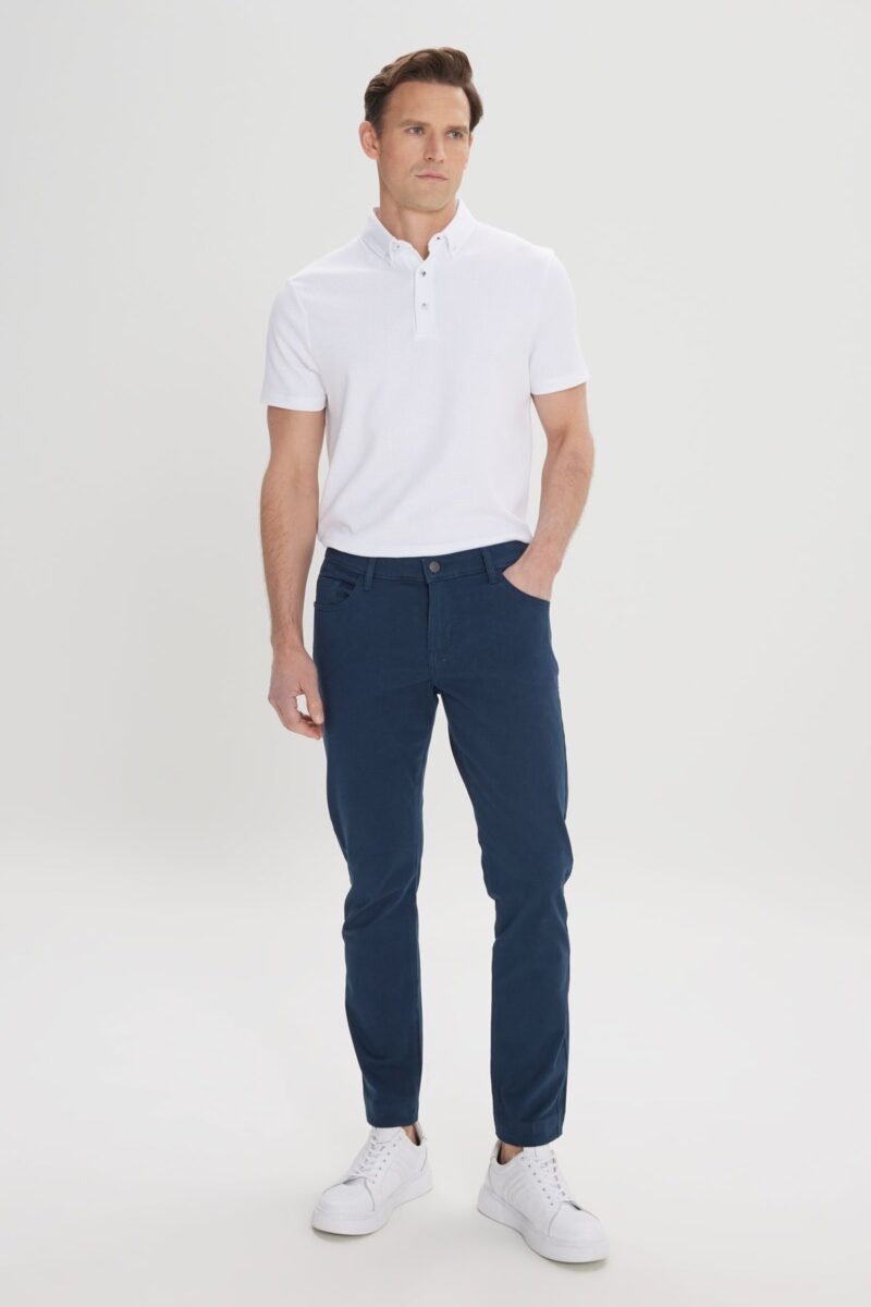 🛍 AC&Co / Altınyıldız Classics Erkek Lacivert Slim Fit Dar Kesim 5 Cep Pamuklu Kanvas Esnek Chino Pantolon