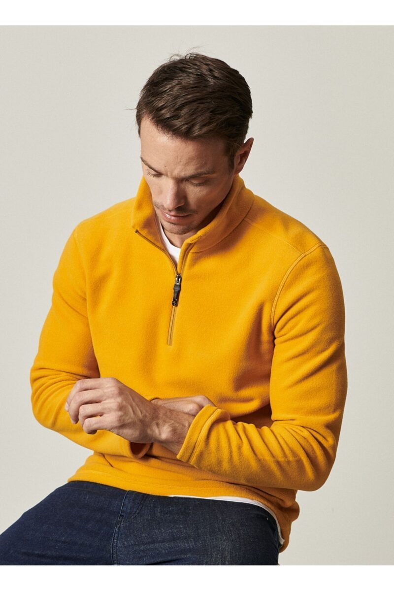 🛍 AC&Co / Altınyıldız Classics Erkek Sarı Anti-pilling Tüylenme Yapmayan Standart Fit Dik Yaka Soğuk Geçirmez Polar Sweatshirt