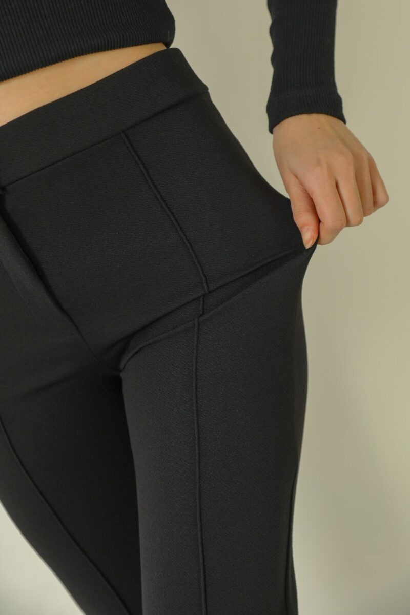 🛍 AREF JEANS Kadın Siyah Yüksek Bel Toparlayıcı Ispanyol Paça Palazzo Pantolon