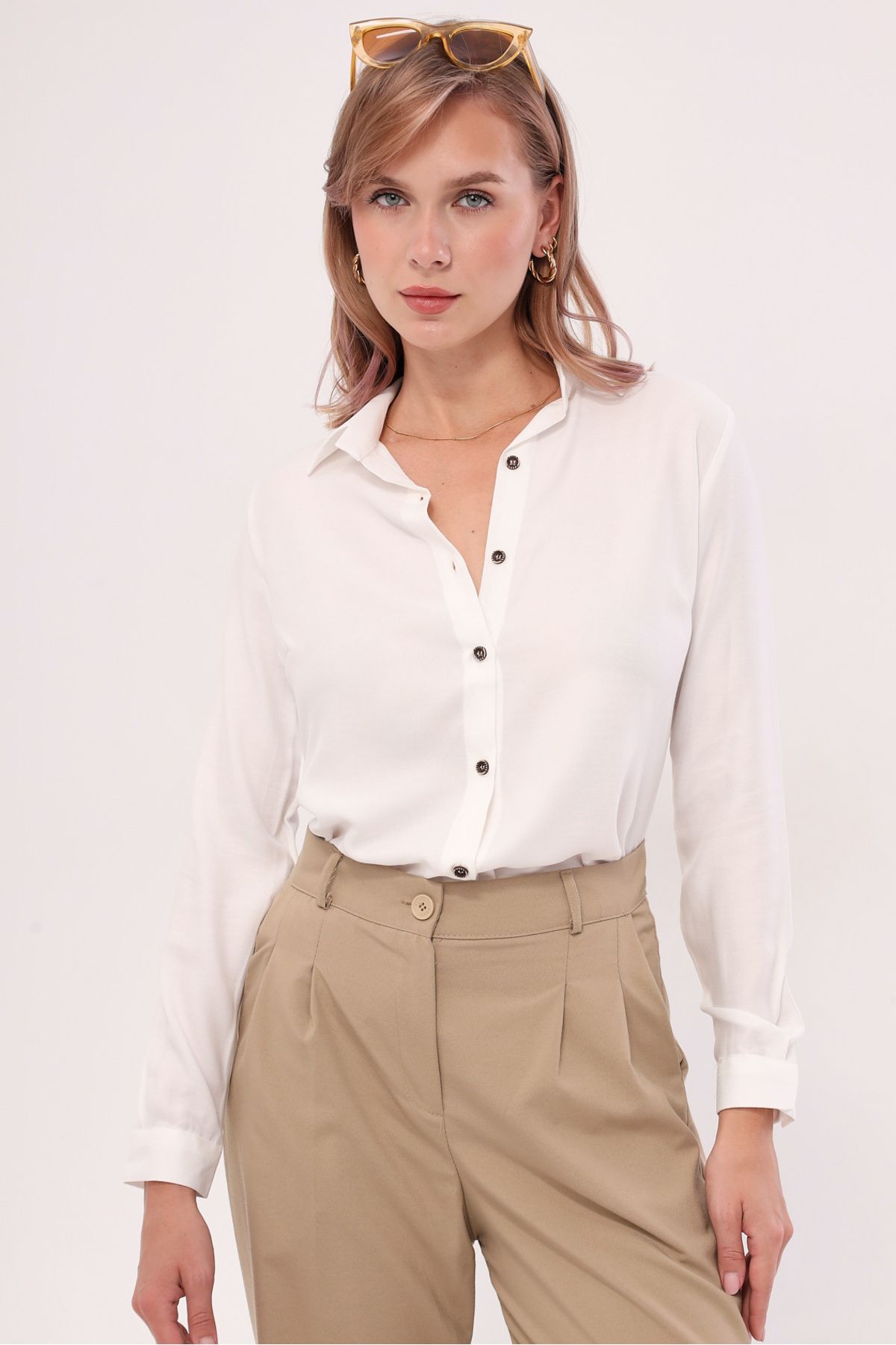 armonika Kadın Beyaz Uzun Kollu Düz Gömlek ARM-18Y001176