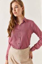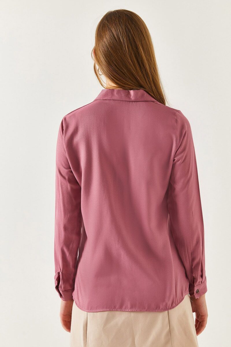 armonika Kadın Gül Kurusu Uzun Kollu Düz Gömlek ARM-18Y001176