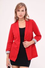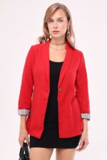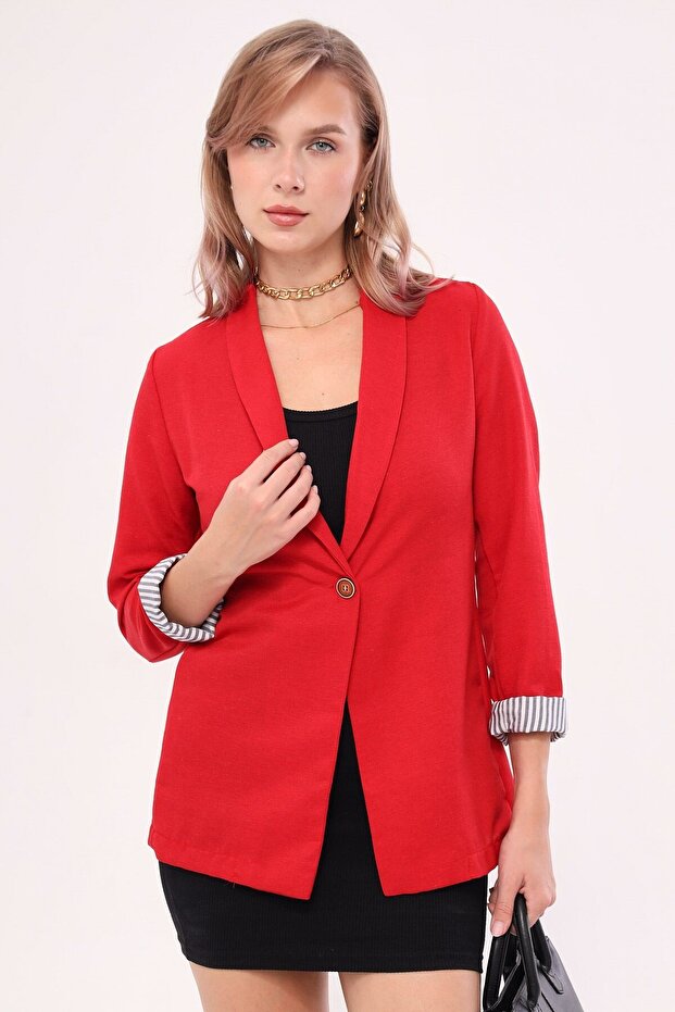 🛍 بازوی کت تک دکمه آستین راه راه قرمز زنانه 22K001122