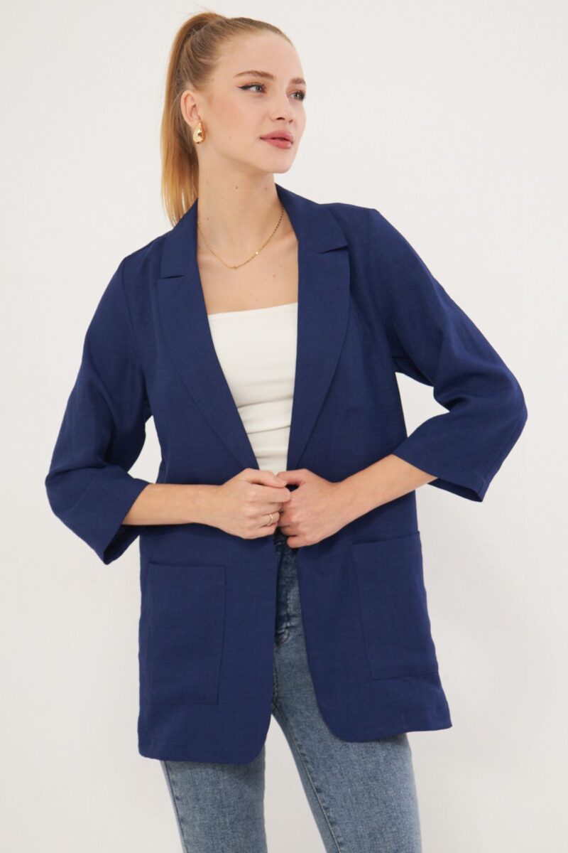 armonika Kadın Lacivert Cepli Oversize Ceket ARM-24Y001115