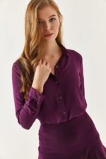 armonika Kadın Mürdüm Uzun Kollu Düz Gömlek ARM-18Y001176
