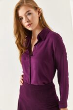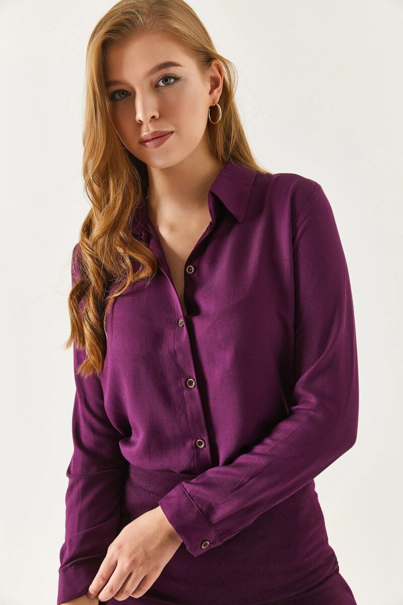🛍 armonika Kadın Mürdüm Uzun Kollu Düz Gömlek ARM-18Y001176