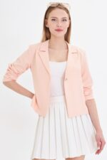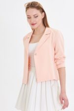 🛍 armonika Kadın Pudra Tek Düğmeli Crop Ceket ARM-22Y001237