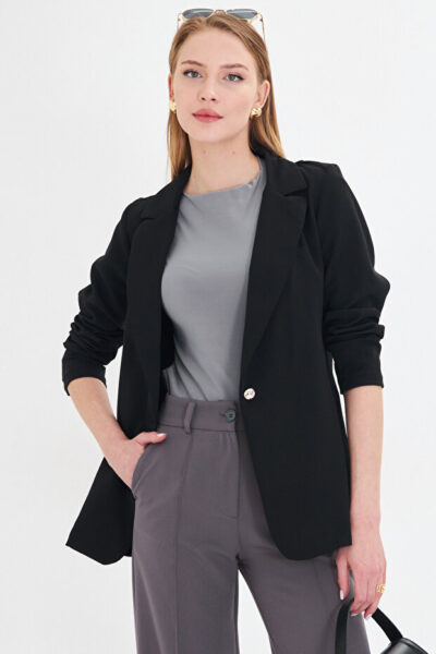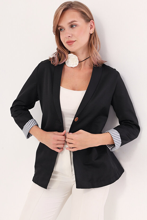 Armonika Kadin Siyah Kol Ici Cizgili Tek Dugmeli Ceket Arm 22K001122