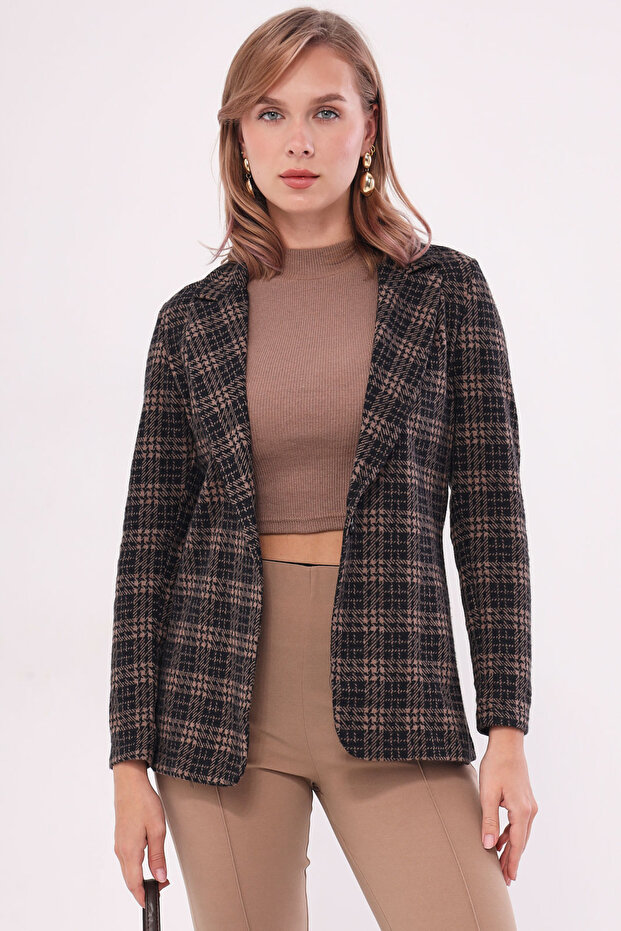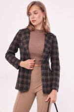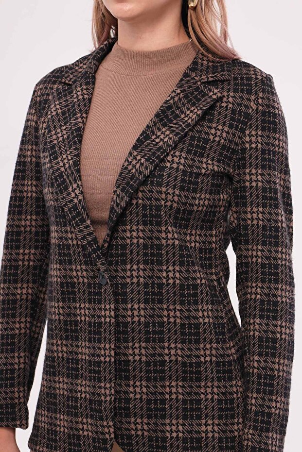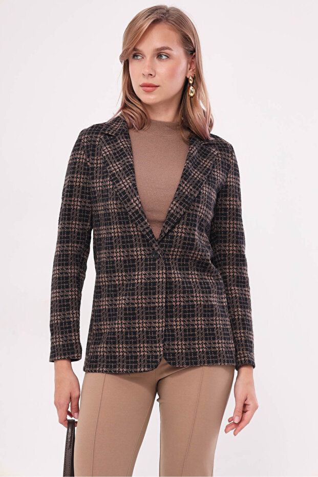 Armonika Kadin Vizon Tek Dugmeli Ekose Ceket Arm 19K001131
