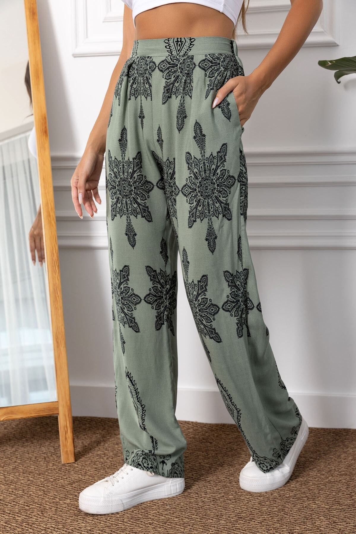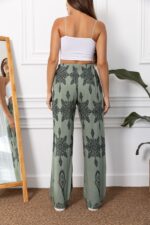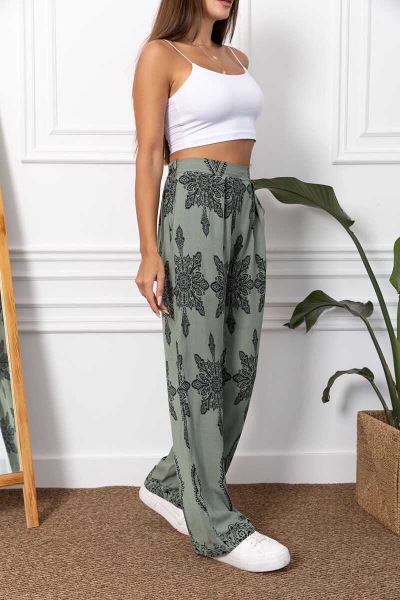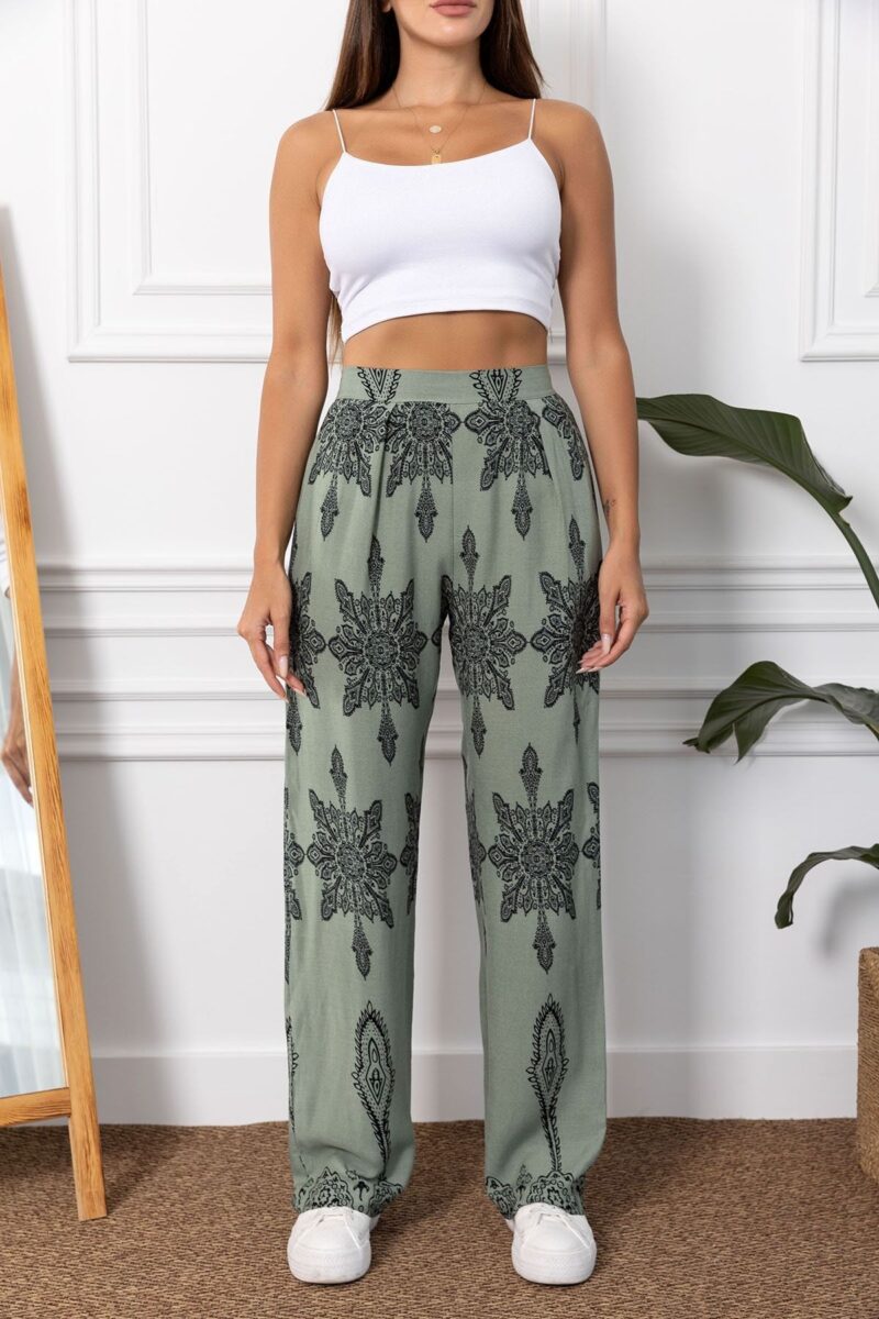 🛍 armonika Kadın Yeşil Desenli Bol Paça Palazzo Pantolon Arm-23y001124