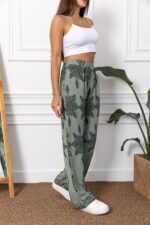 armonika Kadın Yeşil Desenli Bol Paça Palazzo Pantolon Arm-23y001124