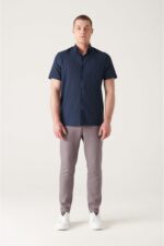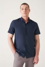 🛍 Avva Erkek Lacivert Düğmeli Yaka %100 Pamuk Ince Kısa Kollu Gömlek E002210