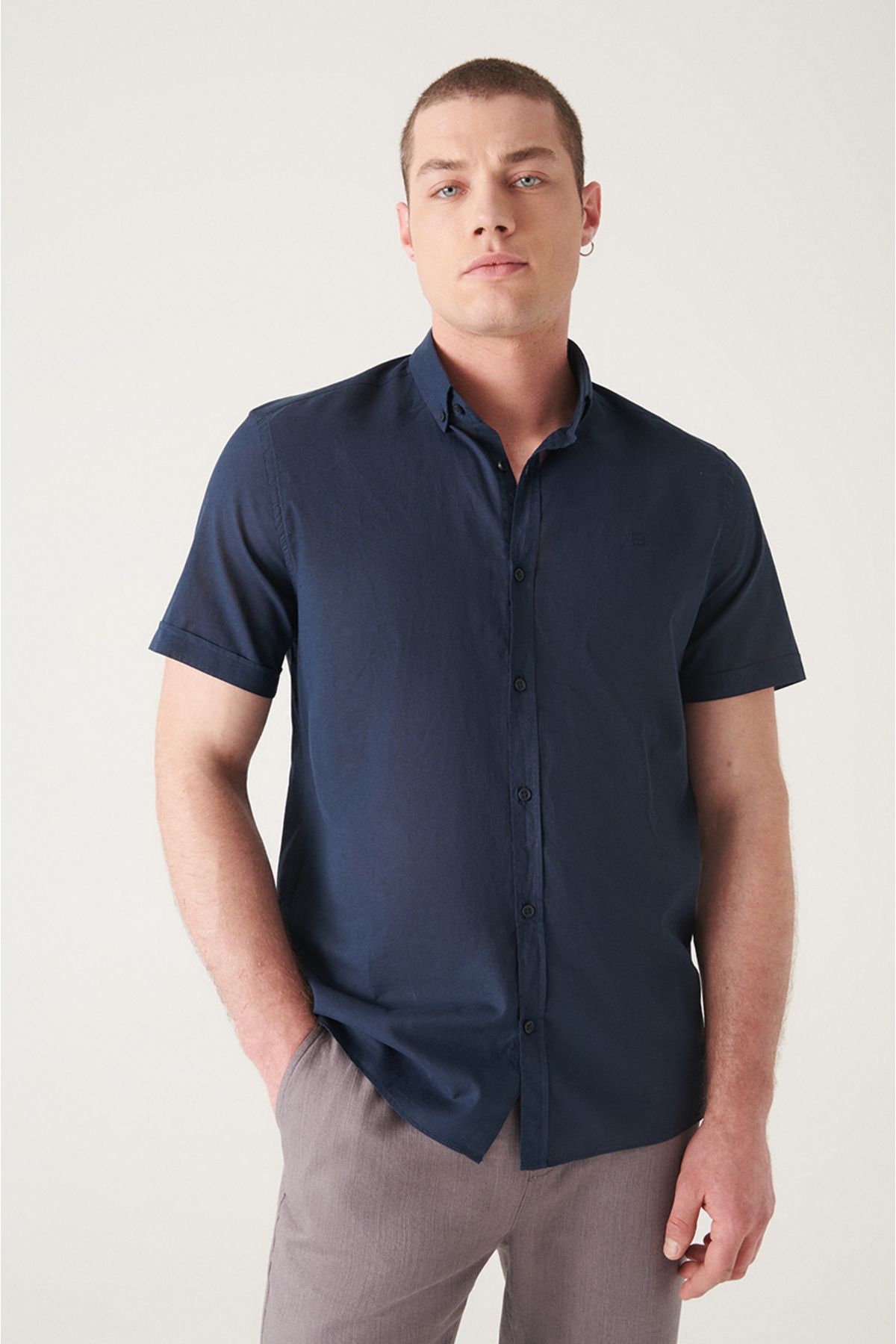 Avva Erkek Lacivert Düğmeli Yaka %100 Pamuk Ince Kısa Kollu Gömlek E002210