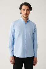 🛍 Avva Erkek Mavi Düğmeli Yaka Kolay Ütülenebilir Pamuklu Oxford Gömlek E002000