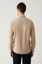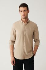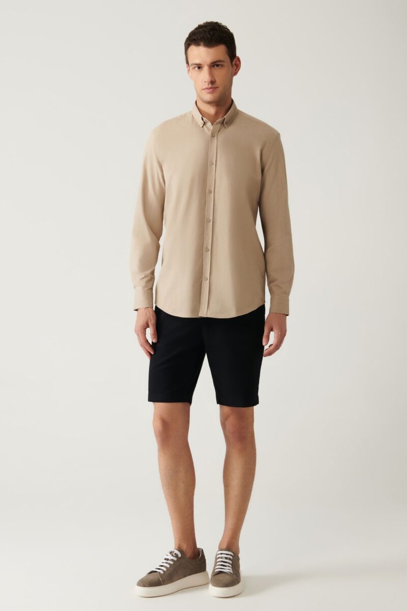 🛍 Avva Erkek Vizon Düğmeli Yaka %100 Pamuk Keten Dokulu Gömlek E002141