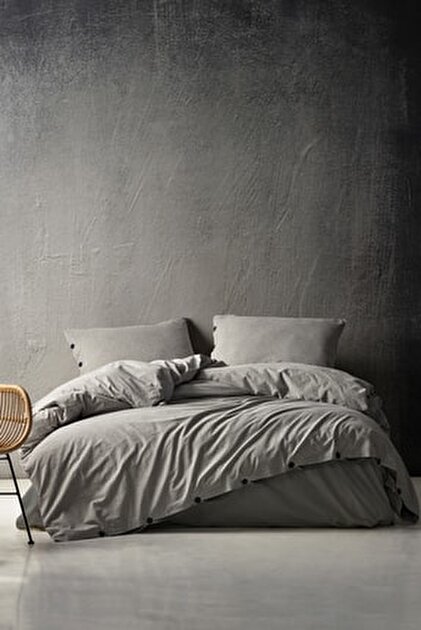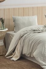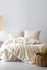 Berolige Sunday %100 Pamuklu Çift Kişilik Yıkamalı İplik Boya Çizgili Nevresim Takımı Kahverengi