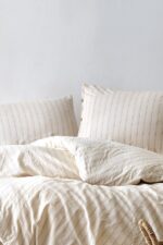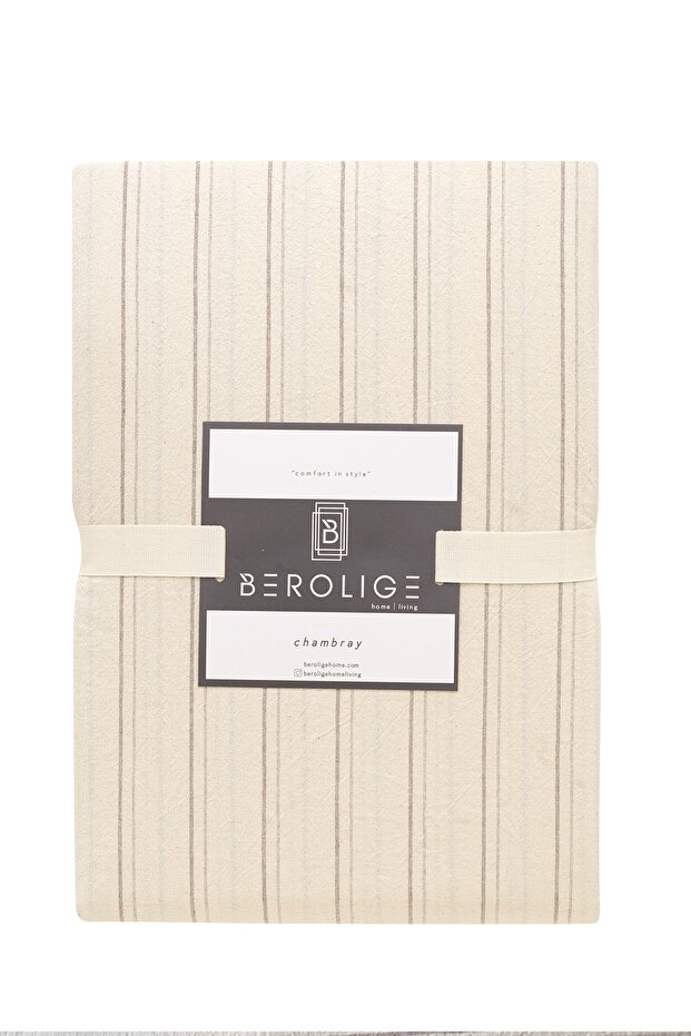 🛍 Berolige Sunday %100 Pamuklu Çift Kişilik Yıkamalı İplik Boya Çizgili Nevresim Takımı Kahverengi