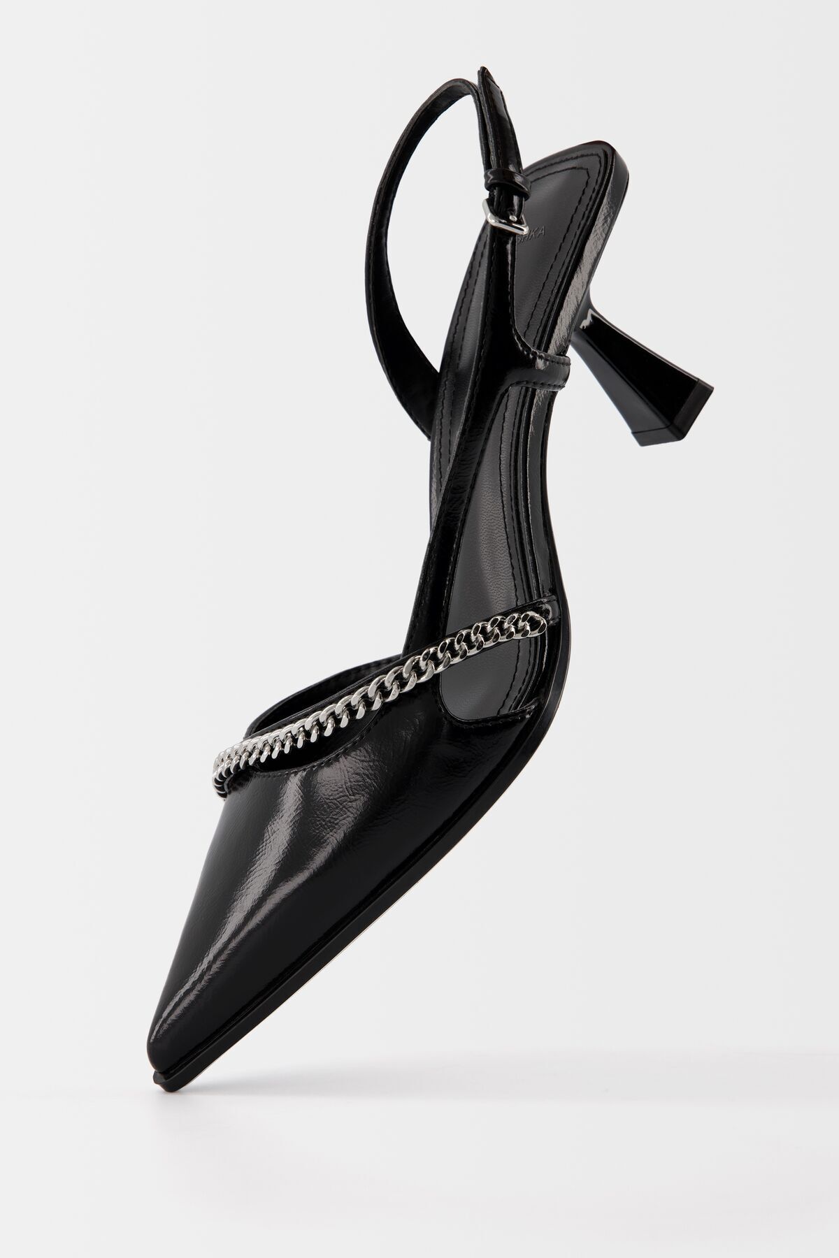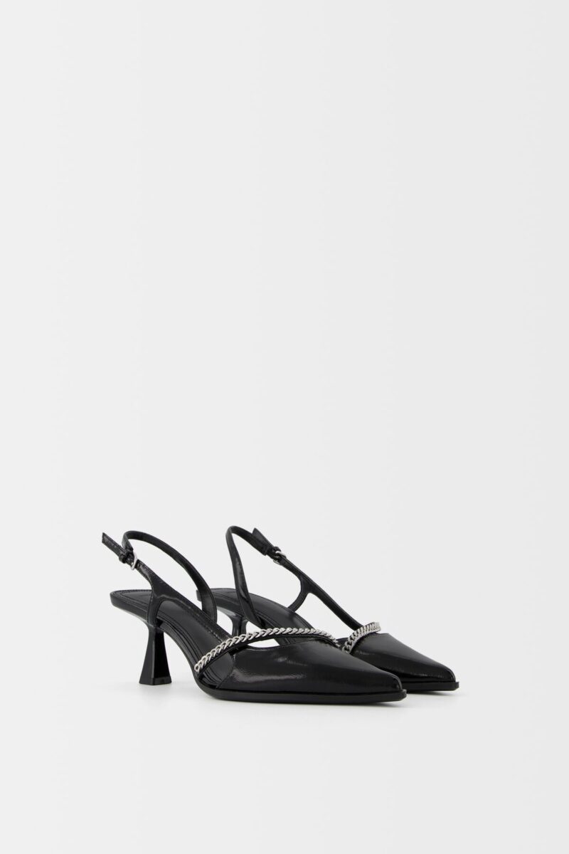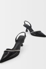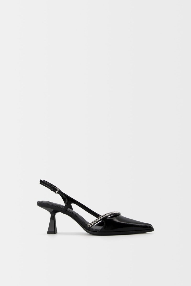 🛍 Bershka Zincir detaylı kısa sivri topuklu ayakkabı
