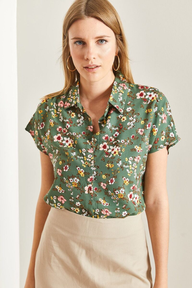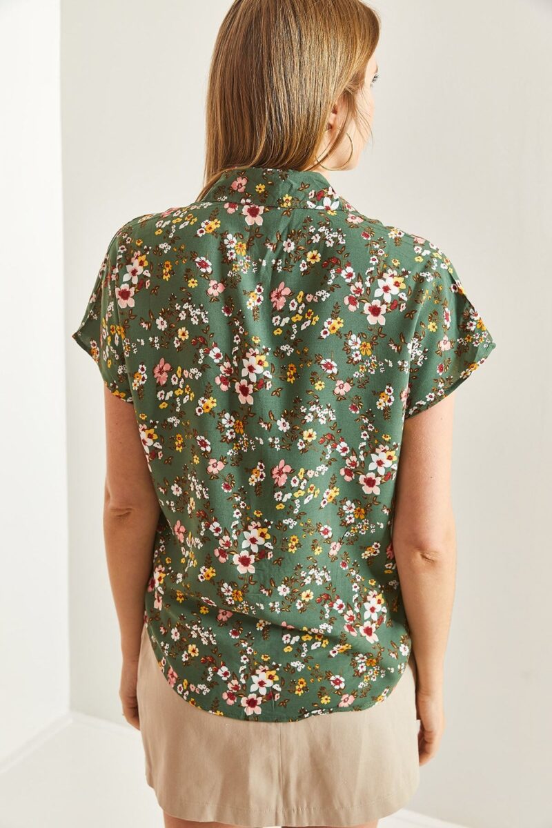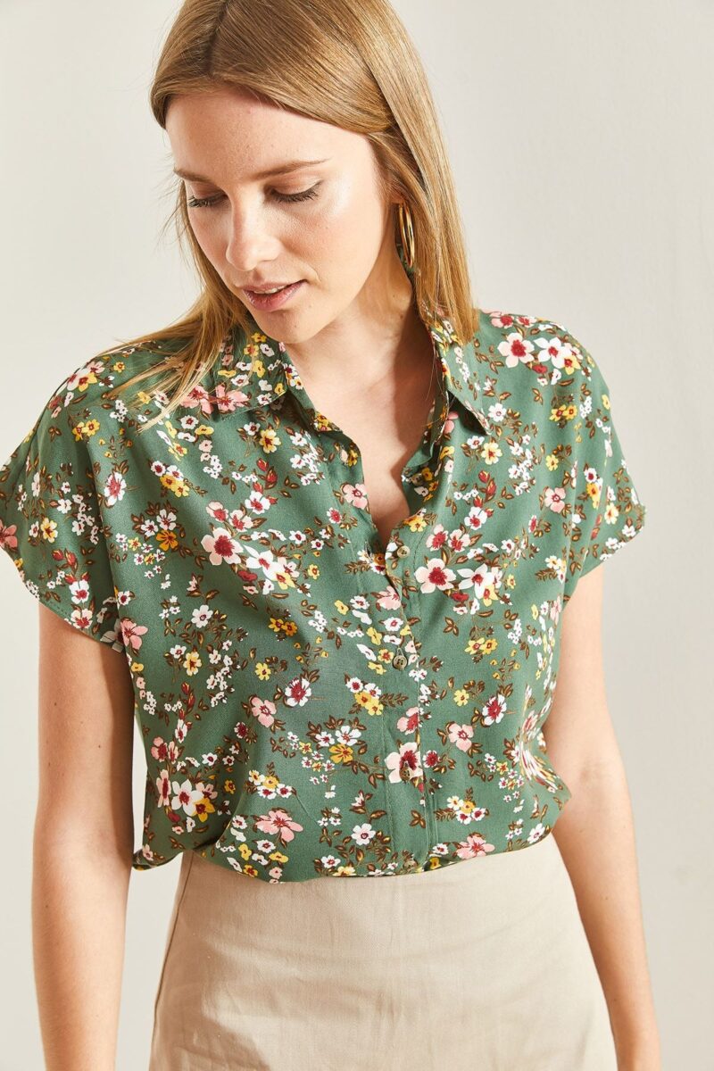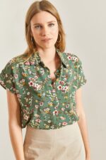 Bianco Lucci Kadın Kısa Kol Desenli Viskon Gömlek