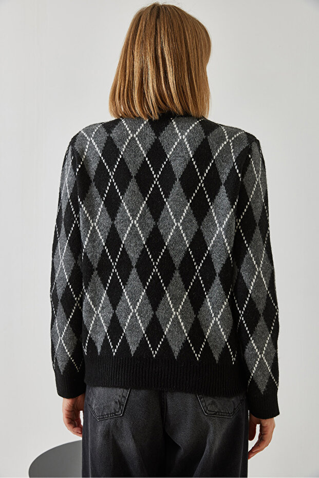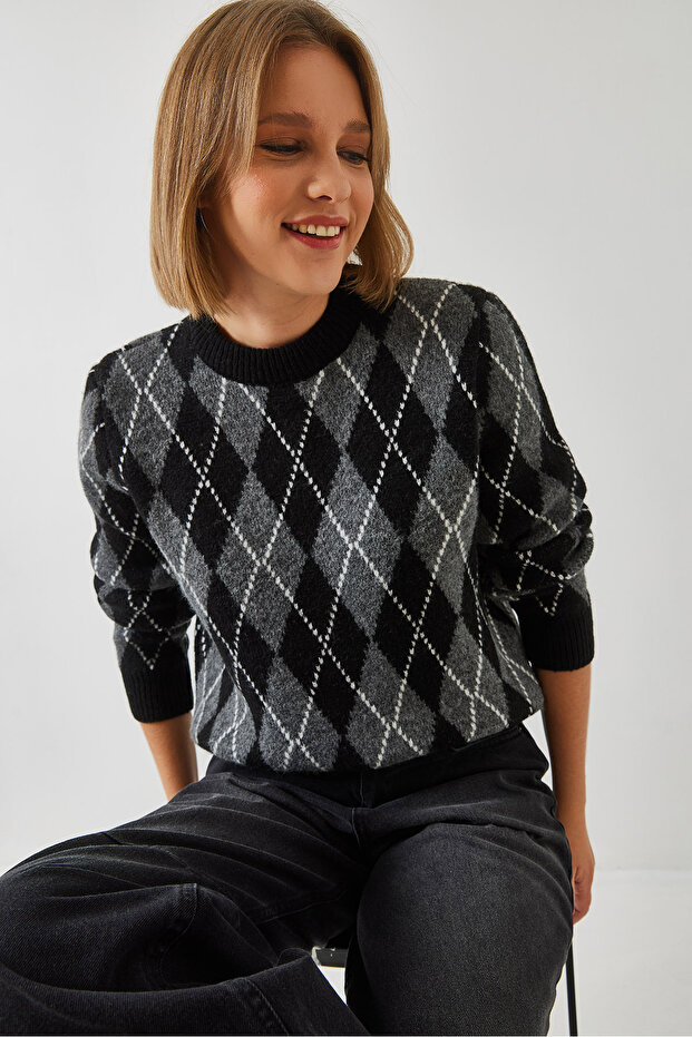 BiancoLucci Kadin Bisiklet Yaka Baklava Desenli Kazak 241192 60261036