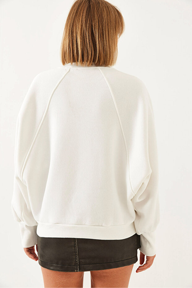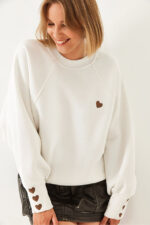 BiancoLucci Kadin Bisiklet Yaka Kalp Nakisli Uc Iplik Sardonlu Sweatshirt 60251933