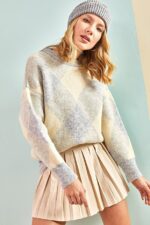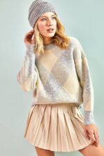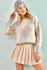 🛍 ژاکت بافتنی زنانه طرح مربعی