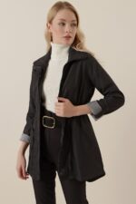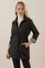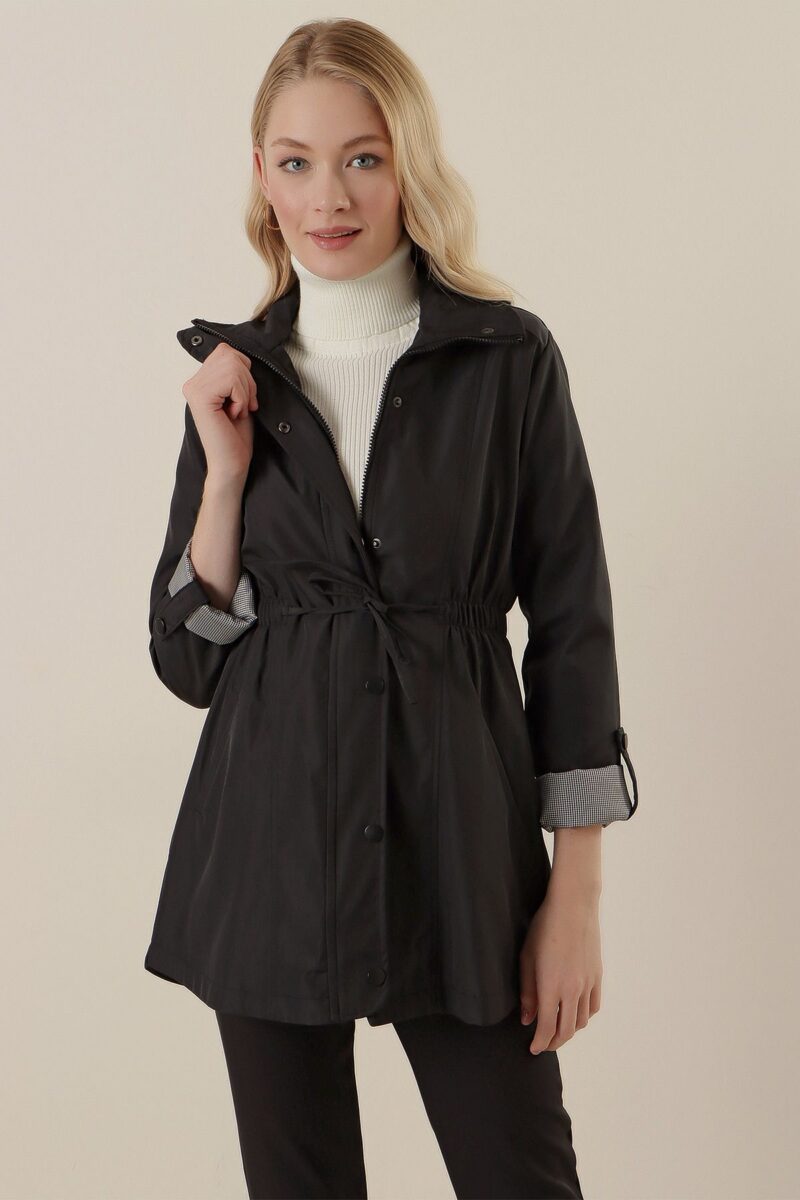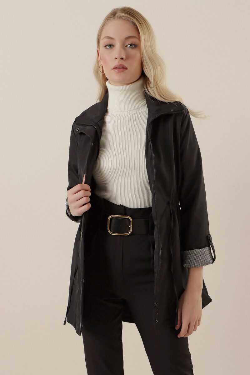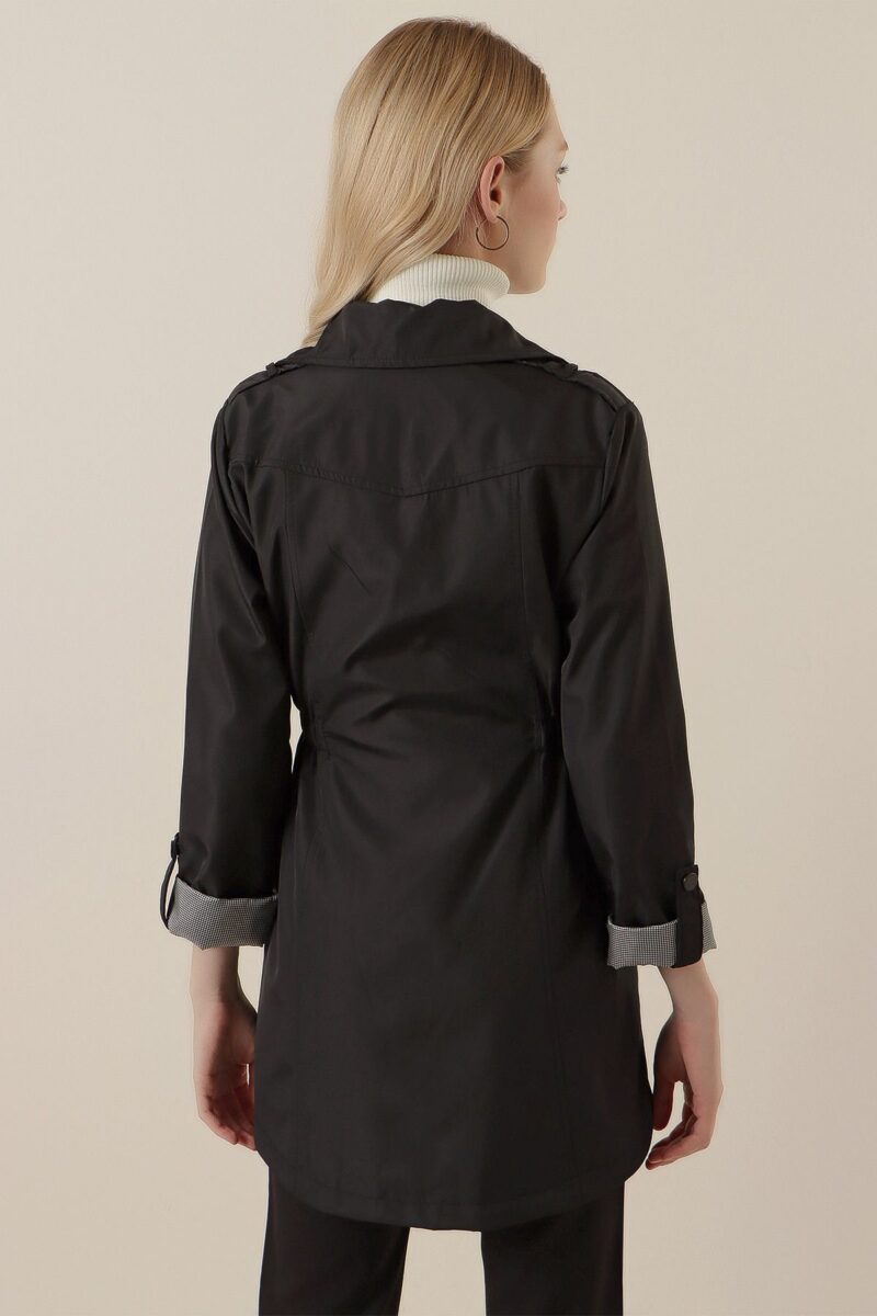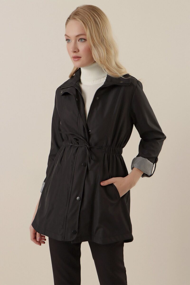 🛍 Bigdart 10322 Beli Büzgülü Trençkot – Siyah