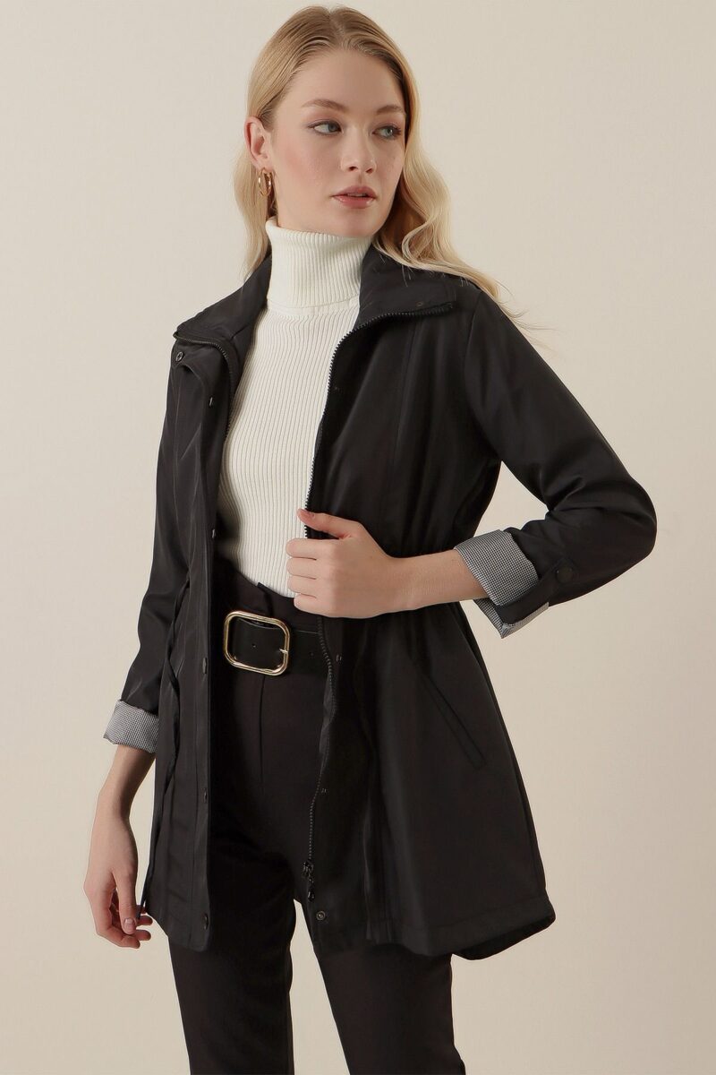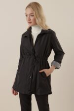 Bigdart 10322 Beli Büzgülü Trençkot – Siyah