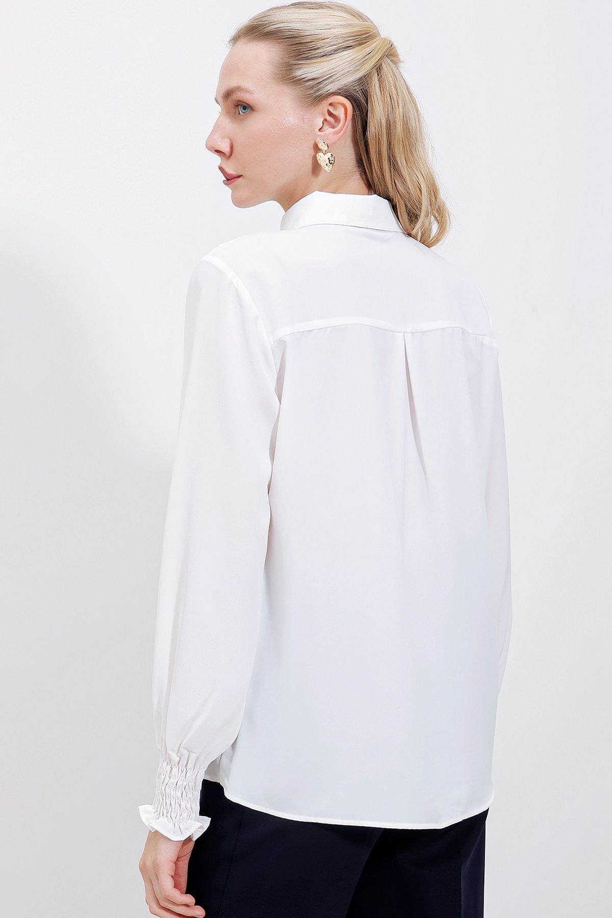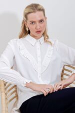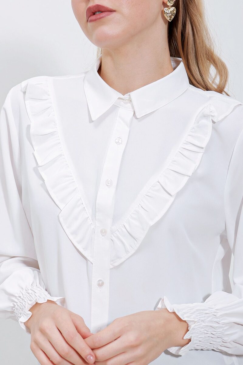 🛍 Bigdart 20223 Fırfırlı Uzun Kol Gömlek – Beyaz