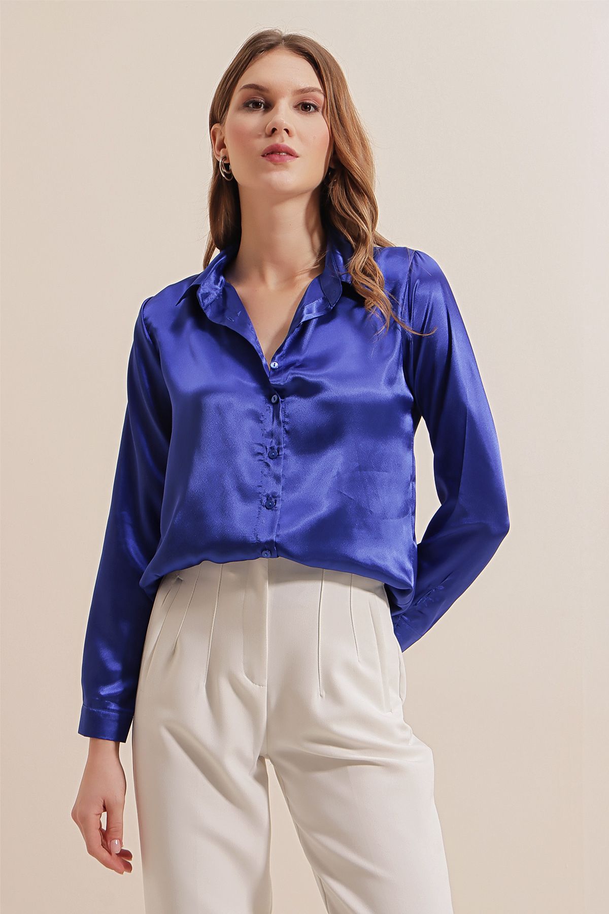 🛍 Bigdart 3964 Hafif Dökümlü Saten Gömlek – Saks