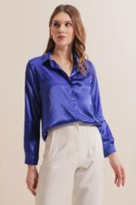 Bigdart 3964 Hafif Dökümlü Saten Gömlek – Saks