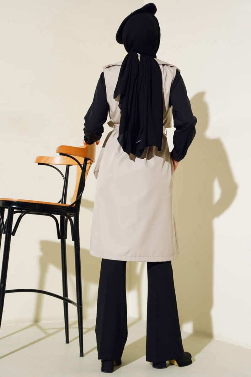 Bigdart 5911 Kruvaze Yaka Trençkot Yelek – Bej