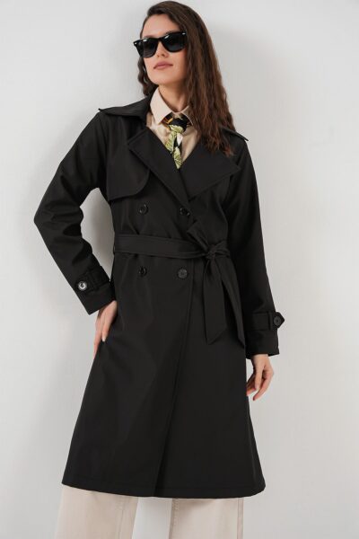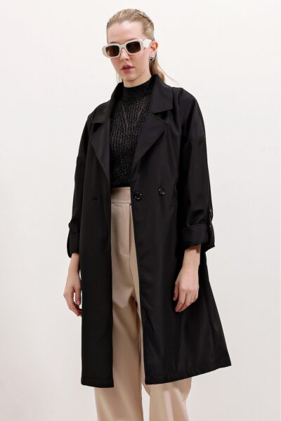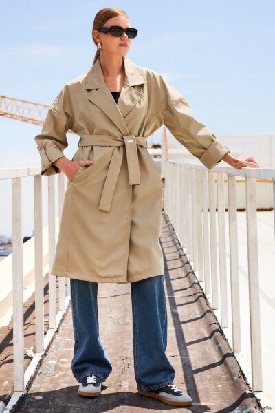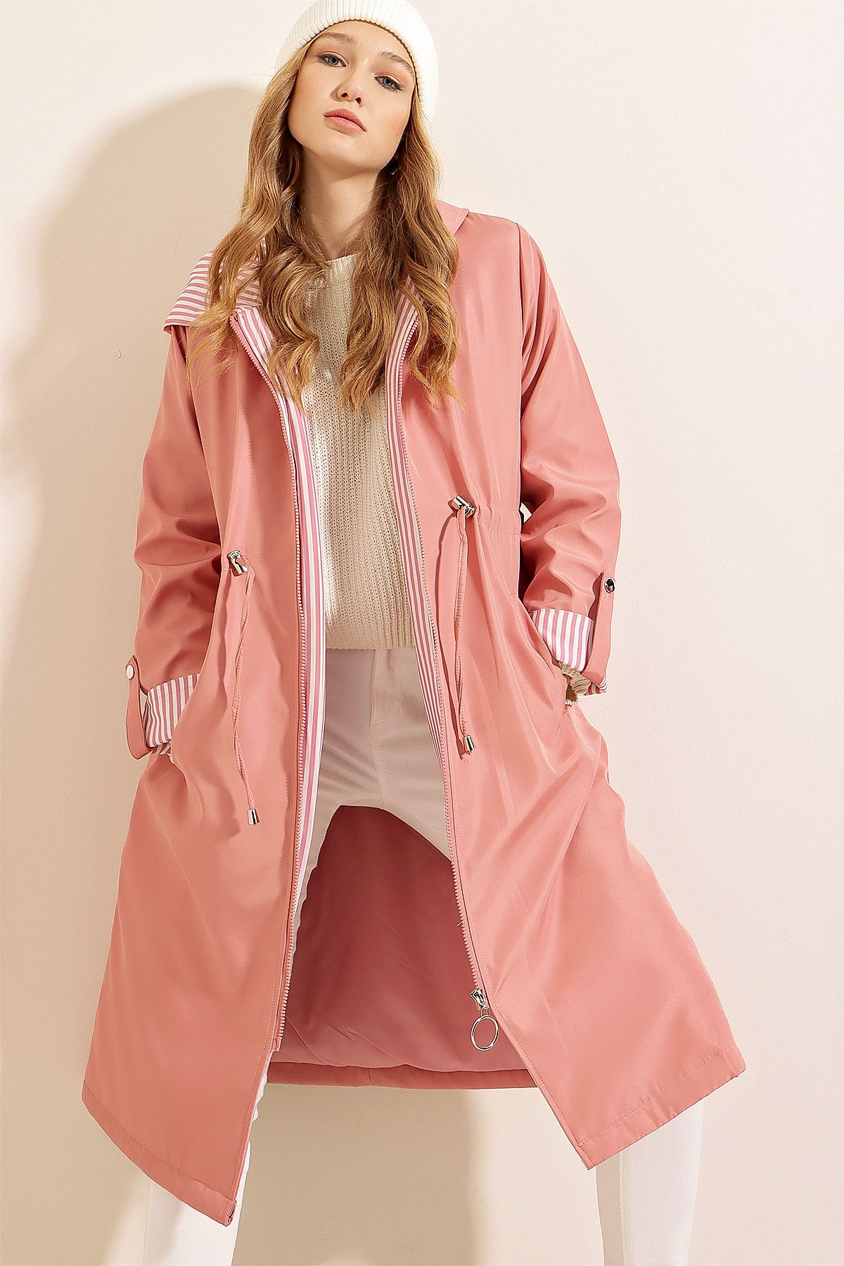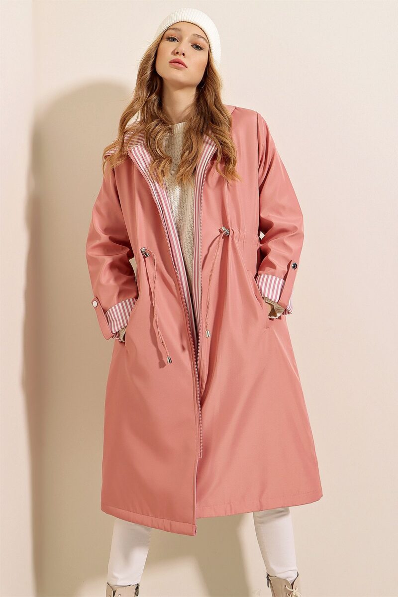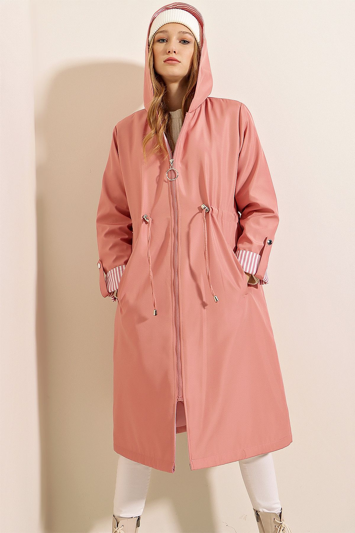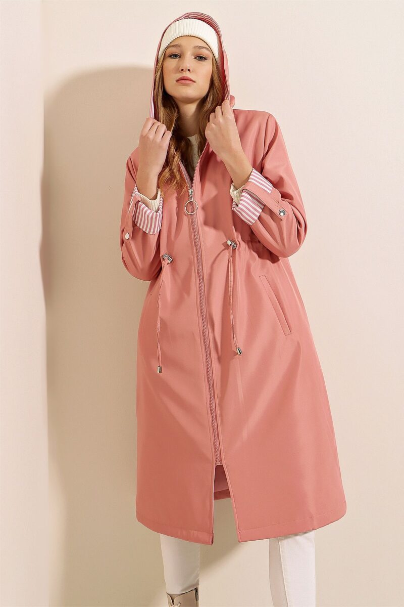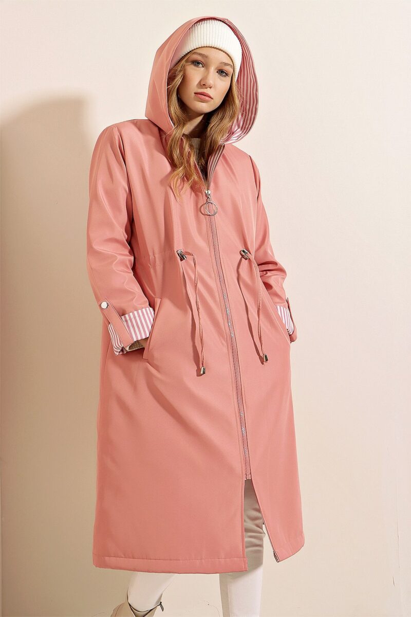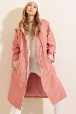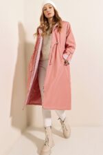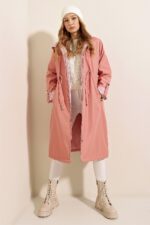 🛍 Bigdart 9091 Beli Büzgülü Kapşonlu Trençkot – Pembe