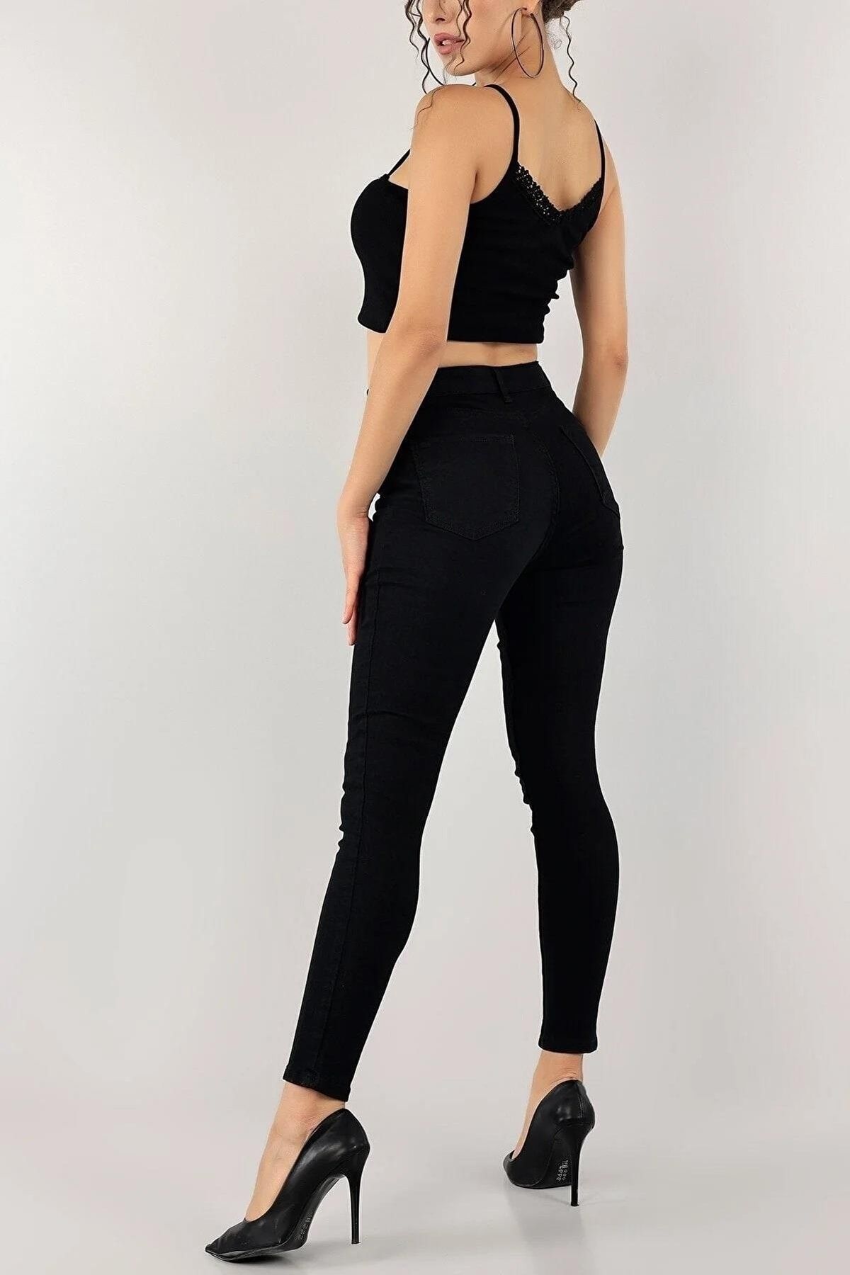 BUKETLİ Siyah Yüksel Bel Likralı Jeans