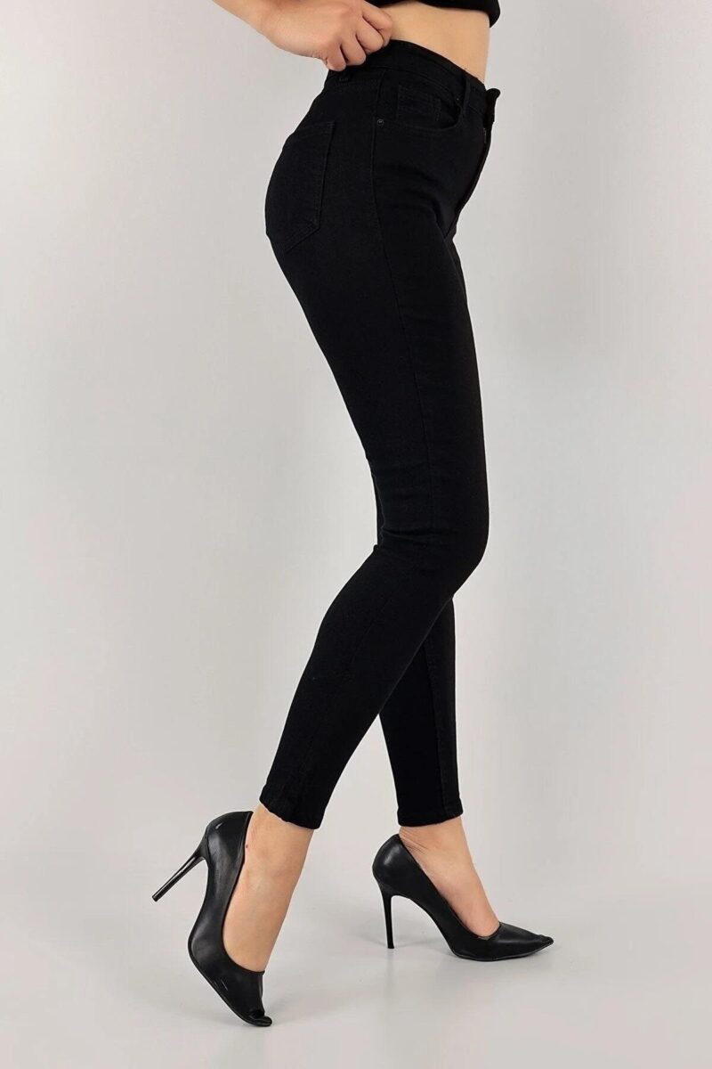🛍 BUKETLİ Siyah Yüksel Bel Likralı Jeans