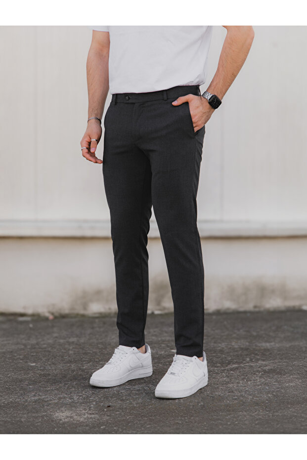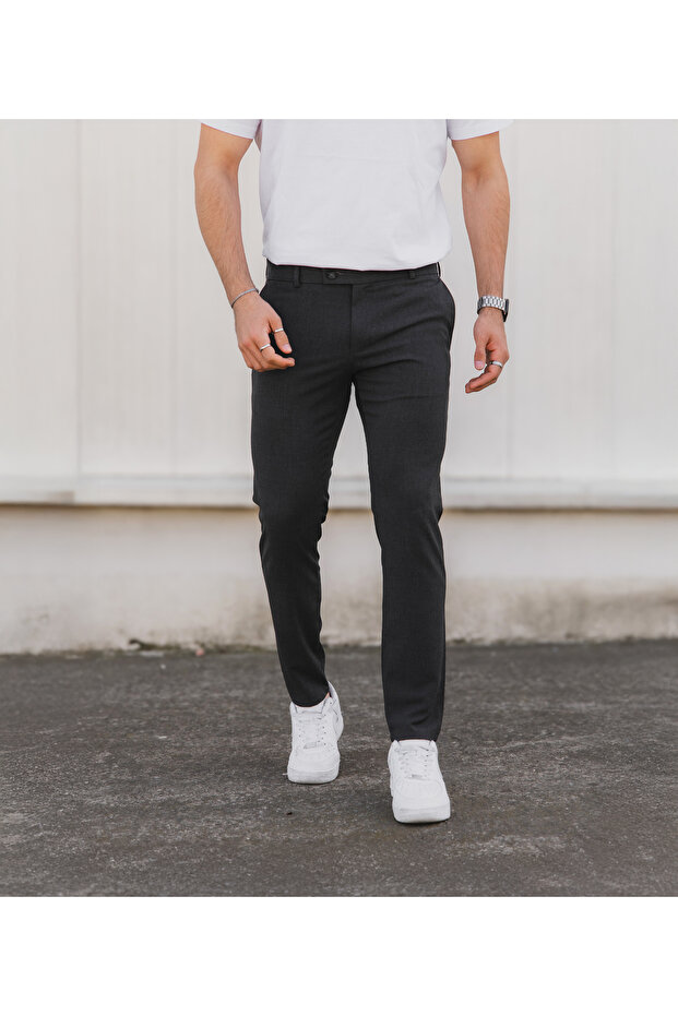 Burke Erkek Antrasit Renk Kaliteli Esnek Likrali Bilek Boy Kumas Pantolon