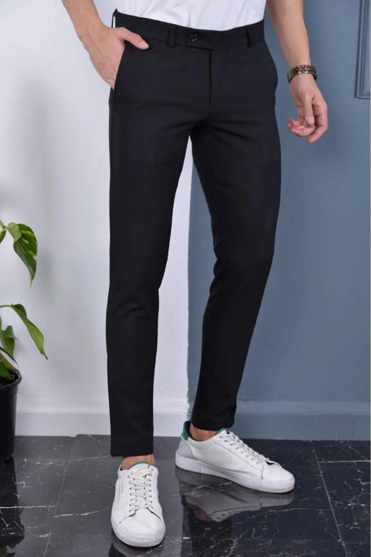 🛍 Bürke Erkek Siyah Renk Kaliteli Esnek Likralı Bilek Boy Kumaş Pantolon