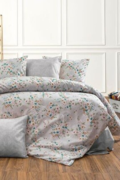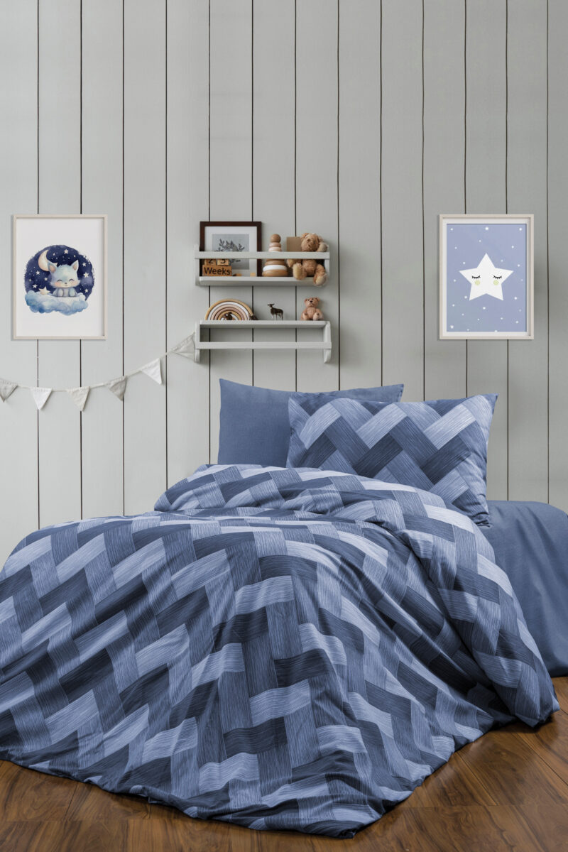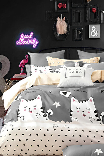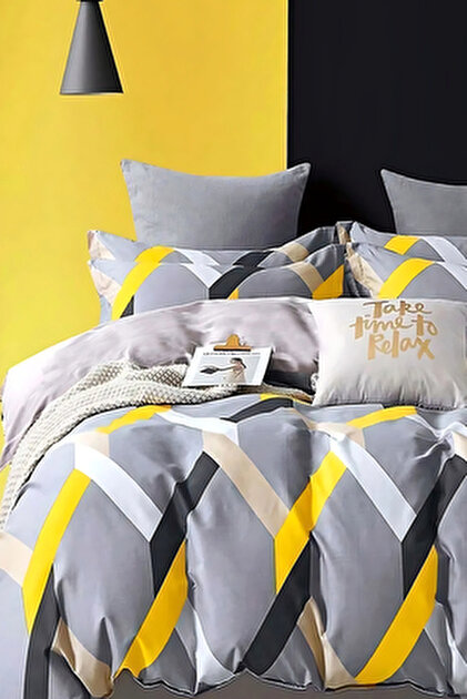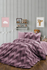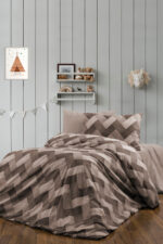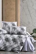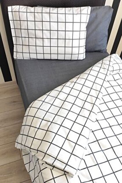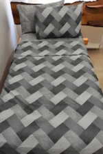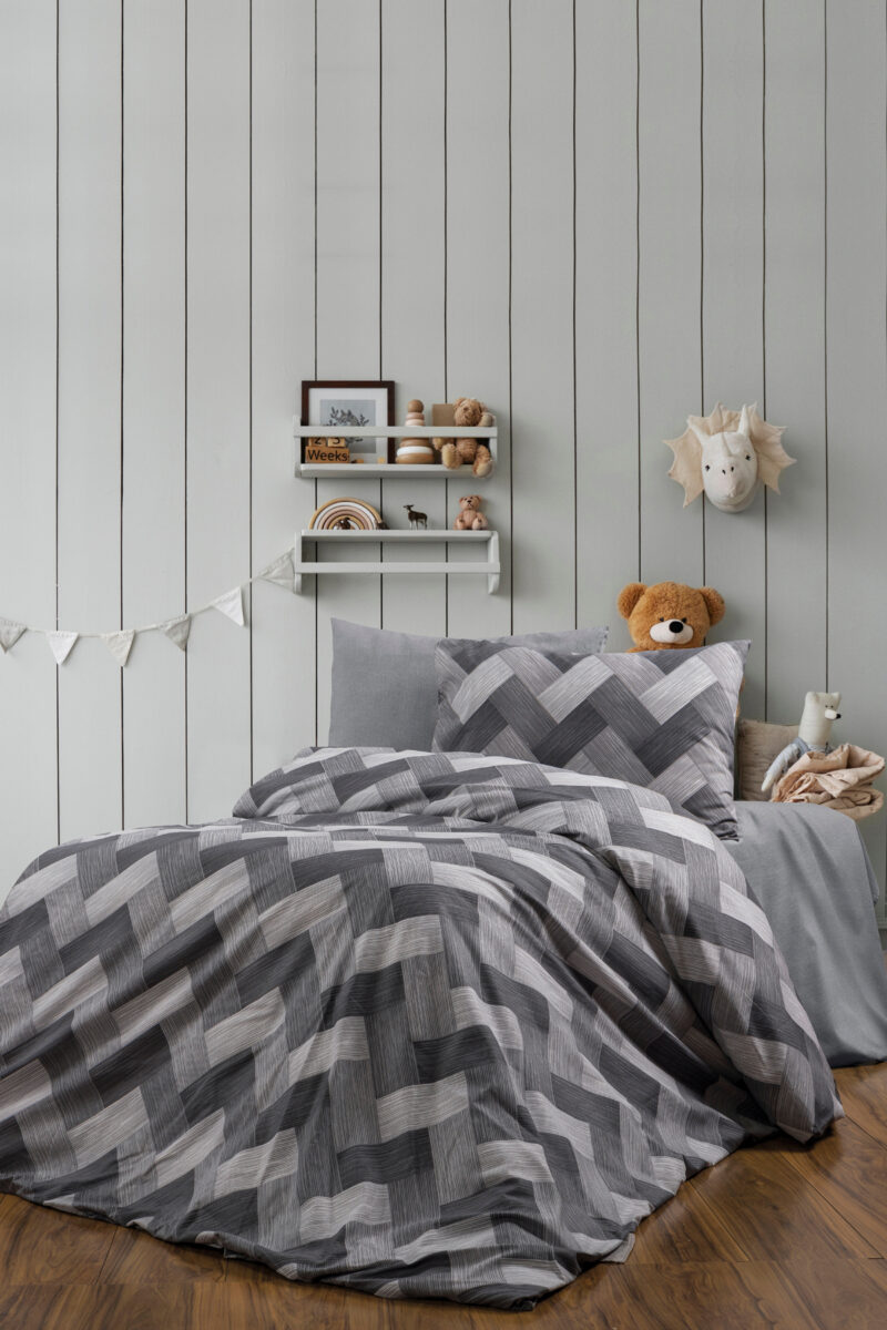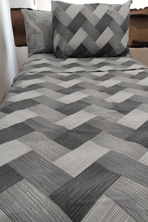 CANDAN ÇEYİZ Tek Kişilik Nevresim Lastikli Çarşaflı Pamuklu Zikzak Gri Nevresim Takımı
