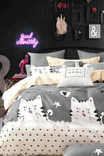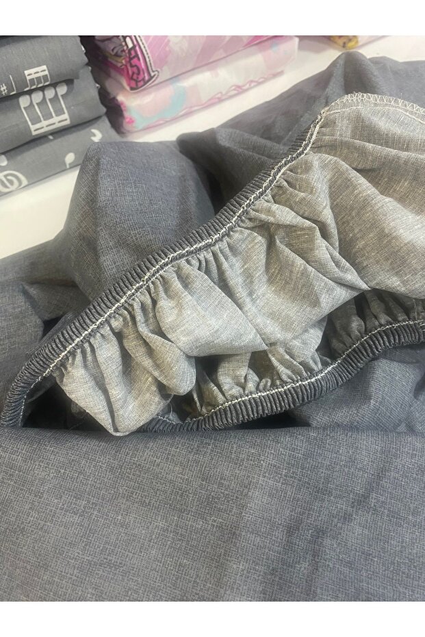 🛍 CANDAN ÇEYİZ Tek Kişilik Nevresim Lastikli Çarşaflı Pamuklu Zikzak Gri Nevresim Takımı