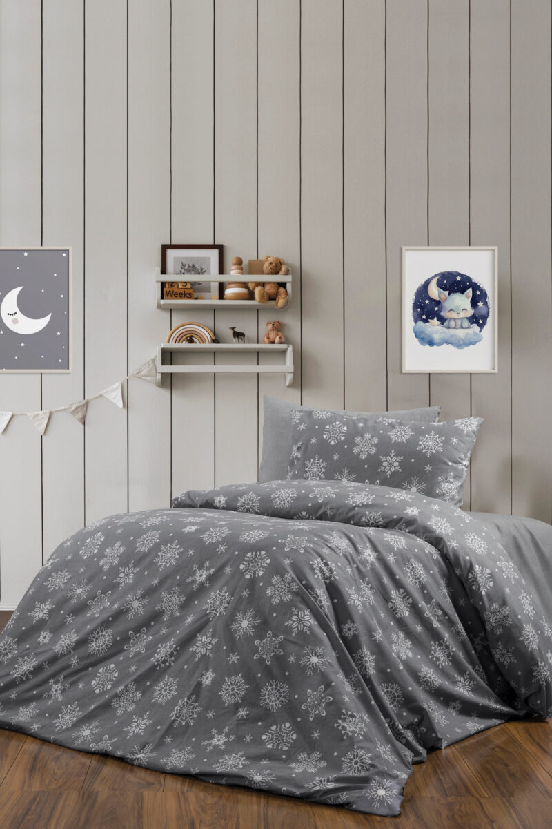 🛍 CANDAN ÇEYİZ Tek Kişilik Nevresim Takımı Lastikli Çarşaflı Kar Tanesi